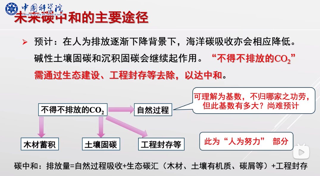 碳中和是指人為排放量(化石燃料利用和土地利用)被人為作用(木材蓄積量、土壤有機(jī)碳、工程封存等)和自然過程(海洋吸收、侵蝕-沉積過程的碳埋藏、堿性土壤的固碳等)所吸收,即凈零排放。