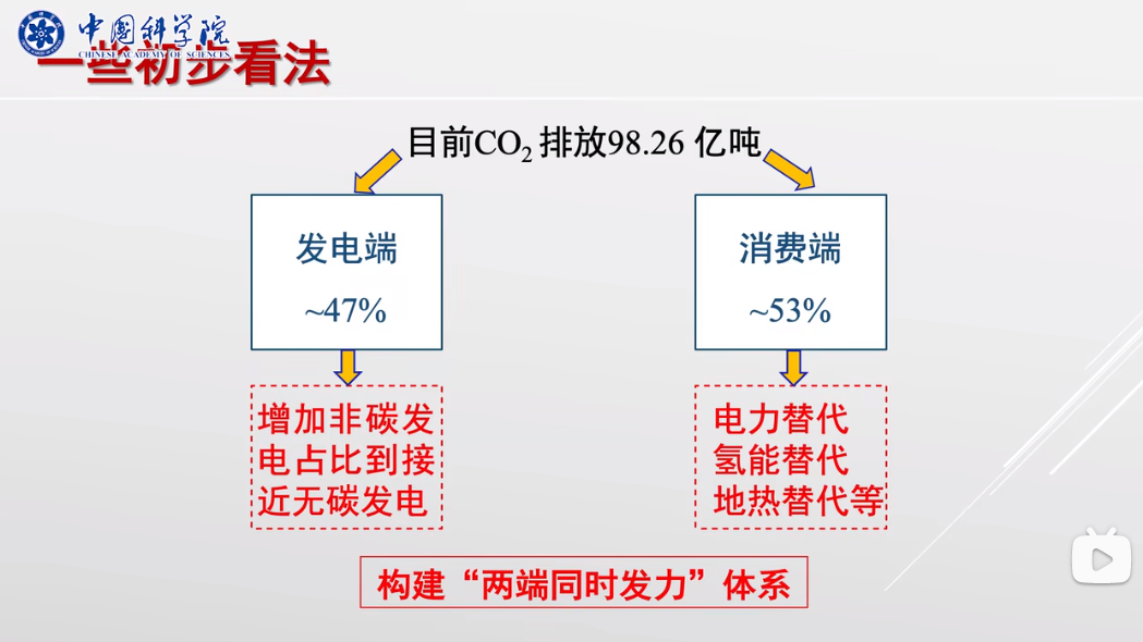 第一端是能源供應(yīng)端,盡可能用非碳能源替代化石能源發(fā)電、制氫,構(gòu)建“新型電力系統(tǒng)或能源供應(yīng)系統(tǒng)”;