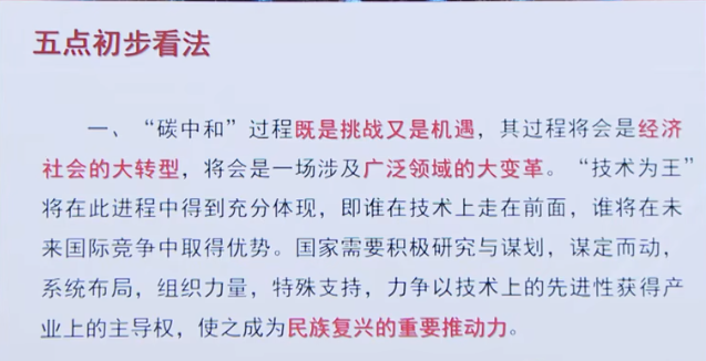 碳中和國家戰(zhàn)略目標(biāo)和中科院碳專項的已有成果,丁仲禮院士提出了五方面的初步看法:
