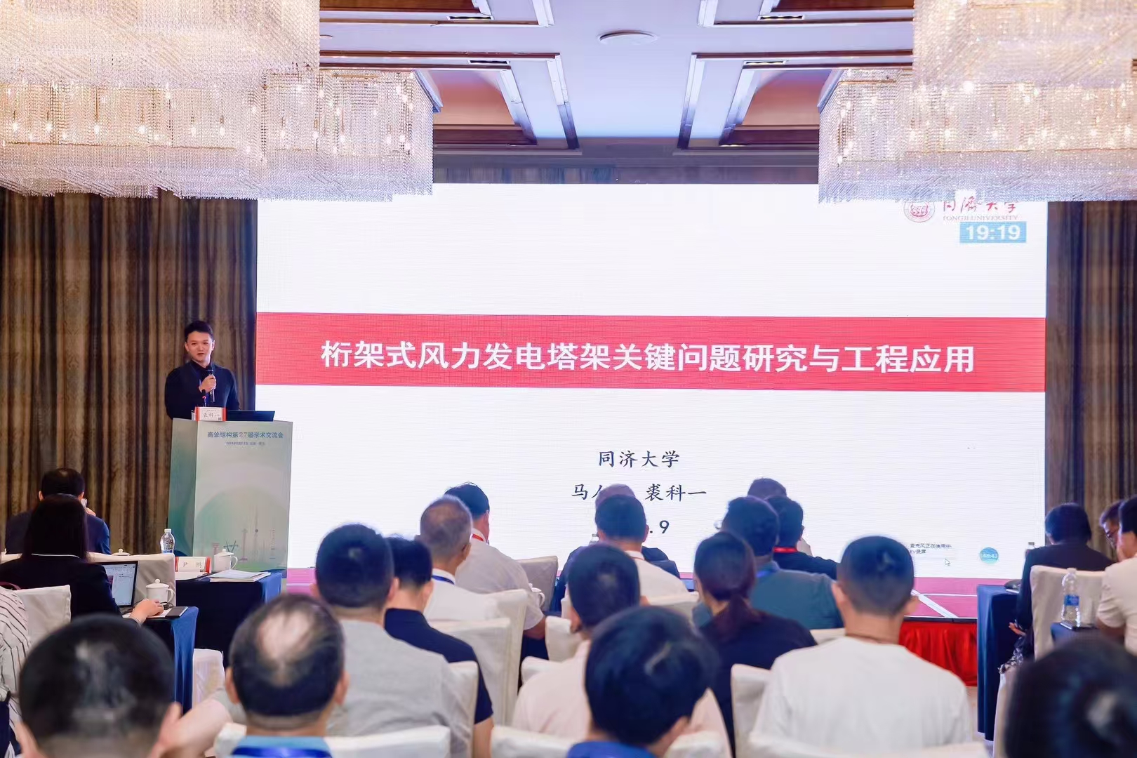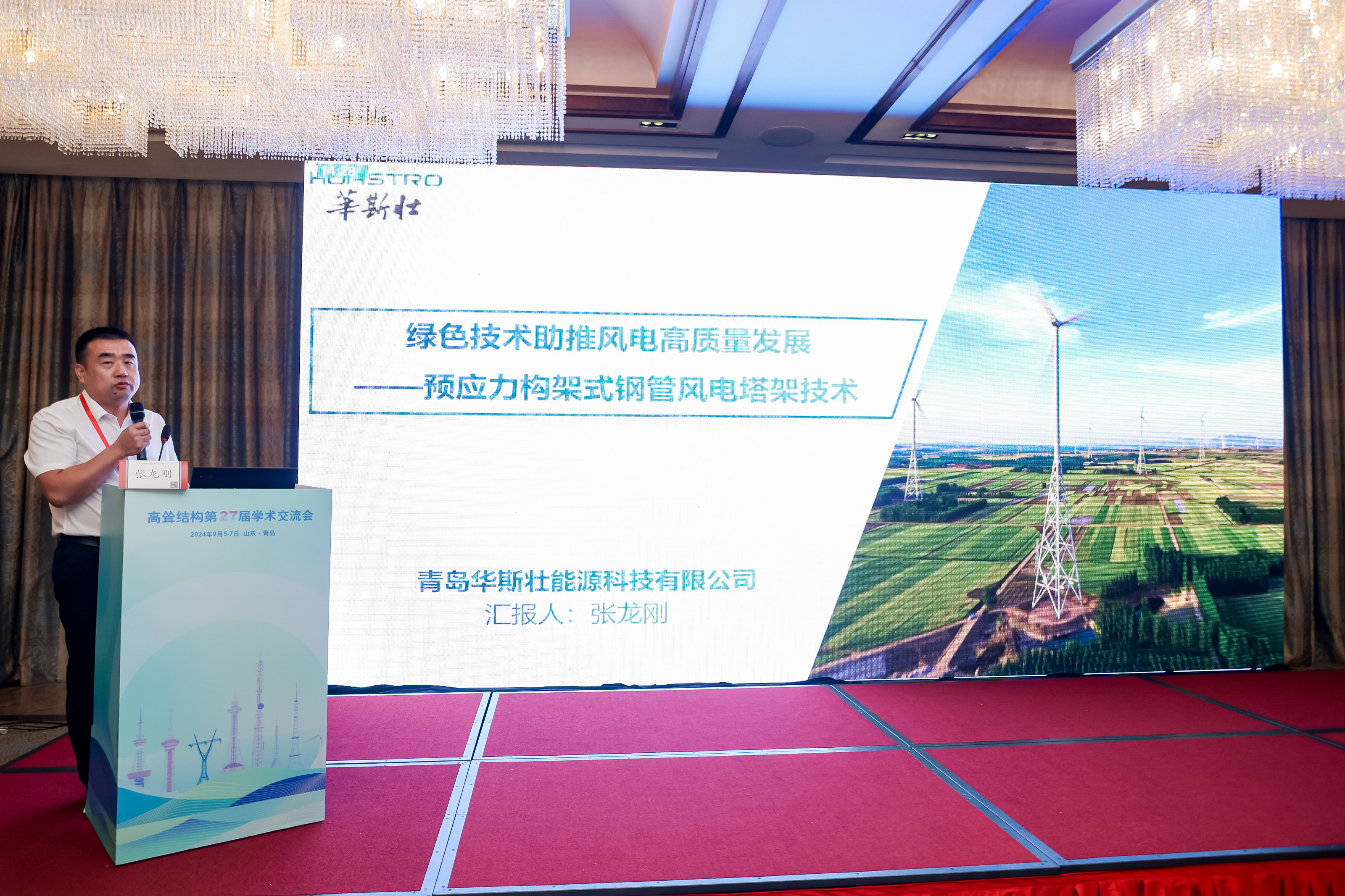 近年來,隨著我國 3060“碳達(dá)峰”、“碳中和”政策的推動(dòng),新能源應(yīng)用持續(xù)推廣,風(fēng)力發(fā)電塔、輸電線路塔等領(lǐng)域內(nèi)新技術(shù)不斷涌現(xiàn),高聳結(jié)構(gòu)檢測、監(jiān)測和維護(hù)領(lǐng)域的技術(shù)也不斷拓展,因此國內(nèi)高聳結(jié)構(gòu)相關(guān)方面取得了很多新成果。我公司的“預(yù)應(yīng)力構(gòu)架式鋼管風(fēng)電塔架技術(shù)”作為風(fēng)電領(lǐng)域內(nèi)的一項(xiàng)全新技術(shù)亮相此次會(huì)議。公司執(zhí)行總經(jīng)理張龍剛上臺(tái)做了主題為《綠色技術(shù)助推風(fēng)電高質(zhì)量發(fā)展-預(yù)應(yīng)力構(gòu)架式鋼管風(fēng)電塔架技術(shù)》的主旨報(bào)告演講,對此技術(shù)進(jìn)行了詳細(xì)講解。