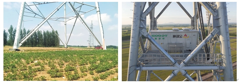 2、創(chuàng)新的四點式基礎(chǔ)設(shè)計將占地面積壓縮至傳統(tǒng)方案的1.5%,僅需6平方米,并首創(chuàng)箱變上塔與底部架空設(shè)計。