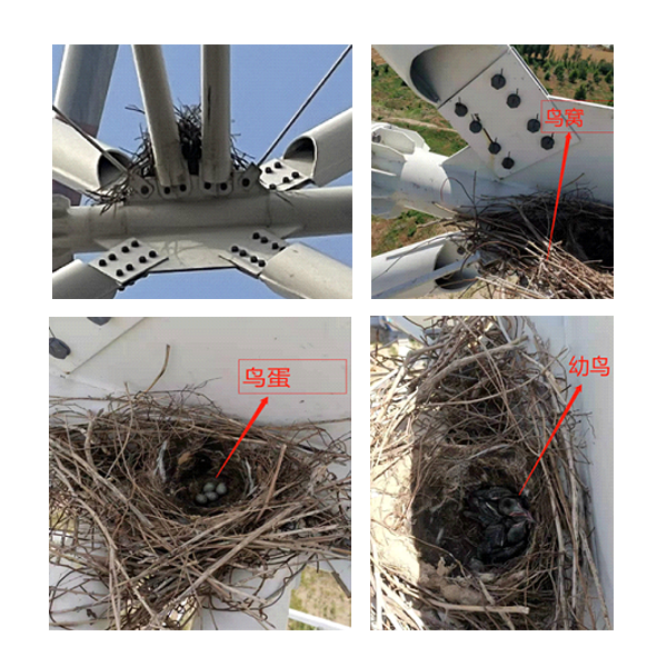 已建成預應力構(gòu)架式鋼管塔架上有鳥巢,因其噪音小,對飛禽沒有任何影響,塔架給鳥兒提供了兼具穩(wěn)定性、安全性、舒適性的繁育后代的優(yōu)良環(huán)境。
