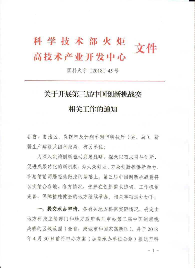 關(guān)于開(kāi)展第三屆中國(guó)創(chuàng)新挑戰(zhàn)賽相關(guān)工作的通知
