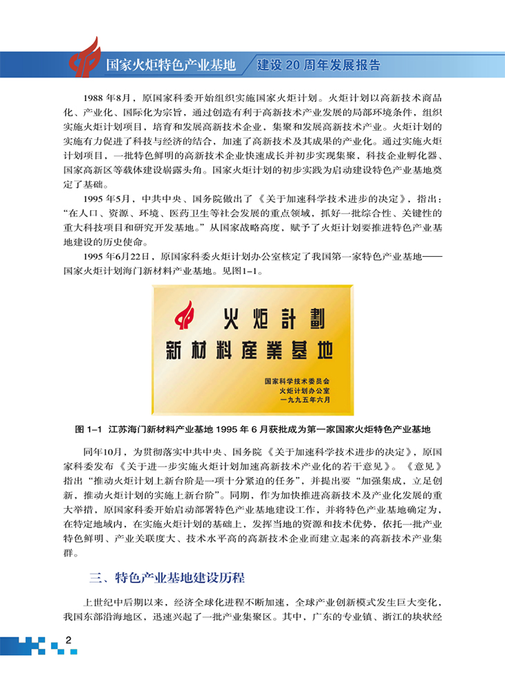 國(guó)家火炬特色產(chǎn)業(yè)基地建設(shè)20周年發(fā)展報(bào)告