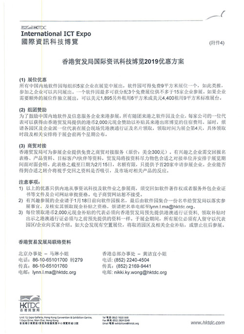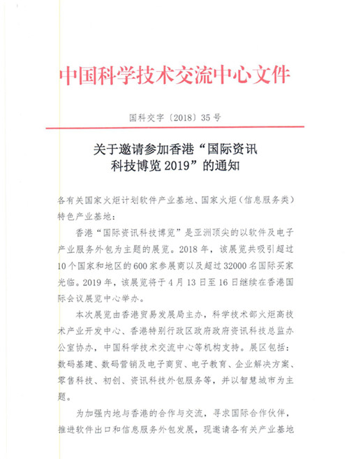 關(guān)于邀請參加香港“國際資訊科技博覽2019”的通知