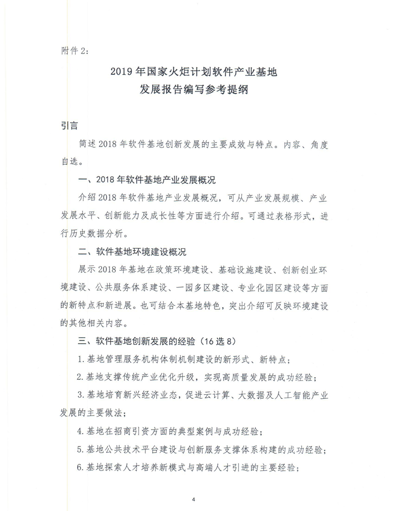 關(guān)于組織編寫(xiě)2019年國(guó)家火炬計(jì)劃軟件產(chǎn)業(yè)基地發(fā)展報(bào)告的通知