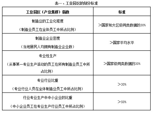 1993年4月,意大利工業(yè)部對(duì)工業(yè)園區(qū)的劃分標(biāo)準(zhǔn)進(jìn)行了具體規(guī)定。見表一。