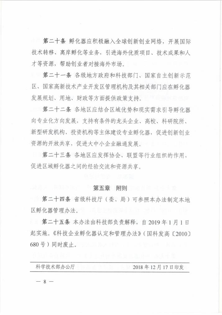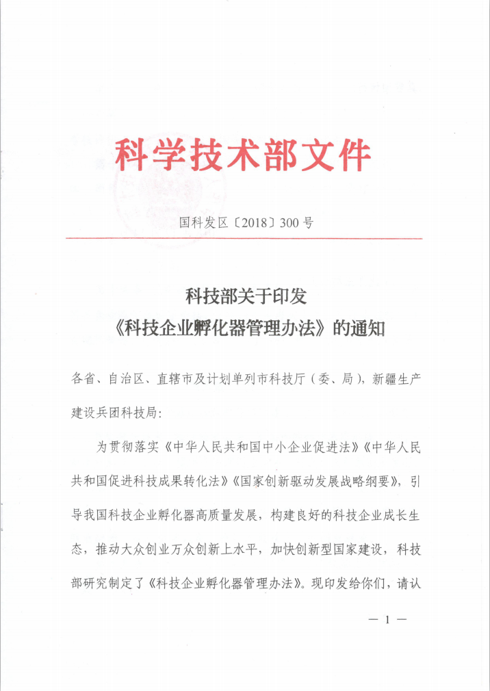 科技部關(guān)于印發(fā)《科技企業(yè)孵化器管理辦法》的通知
