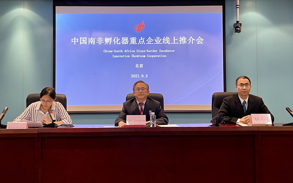 為貫徹落實中國與南非兩國間達(dá)成的創(chuàng)新合作交流共識,加快推動中國南非科技園合作項目落地,促進(jìn)雙邊創(chuàng)新創(chuàng)業(yè)交流互動,2021年9月2日,中國南非孵化器重點企業(yè)推介會通過線上方式舉行??萍疾炕鹁嬷行闹魅钨Z敬敦、南非科技創(chuàng)新部副總司長杜·托伊特、中國駐南非大使館公使銜參贊沈龍、西安高新區(qū)管委會副主任楊華等嘉賓出席活動并致辭。會上來自兩國的12家企業(yè)分享各自創(chuàng)業(yè)經(jīng)驗,對中國南非創(chuàng)新展廳的建設(shè)情況及展廳首批入駐項目進(jìn)行了線上推介。