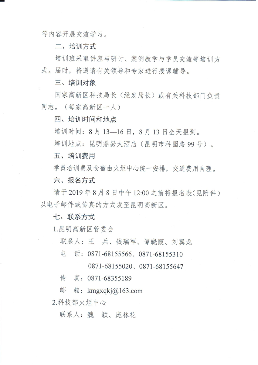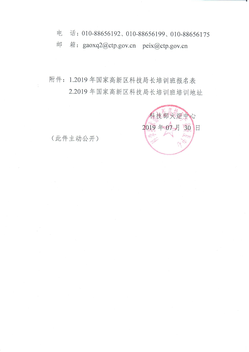 附件1:2019年國家高新區(qū)科技局長培訓(xùn)班報名表