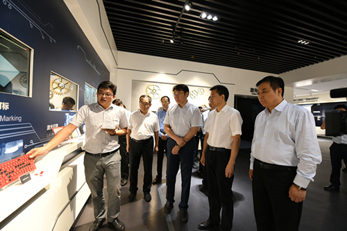 2018年9月11日,陜西省副省長、寶雞市委書記徐啟方(右2)陜西省委科技工委書記、科技廳廳長趙巖(右3)深入激光加工國家工程研究中心西北區(qū)域中心調(diào)研