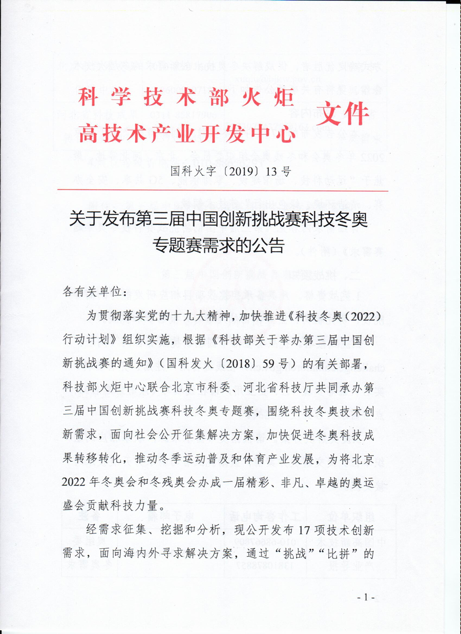 附件:第三屆中國(guó)創(chuàng)新挑戰(zhàn)賽科技冬奧專題賽需求