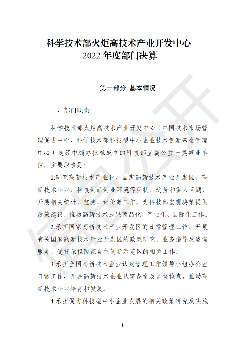 科學(xué)技術(shù)部火炬高技術(shù)產(chǎn)業(yè)開(kāi)發(fā)中心2022年度部門(mén)決算