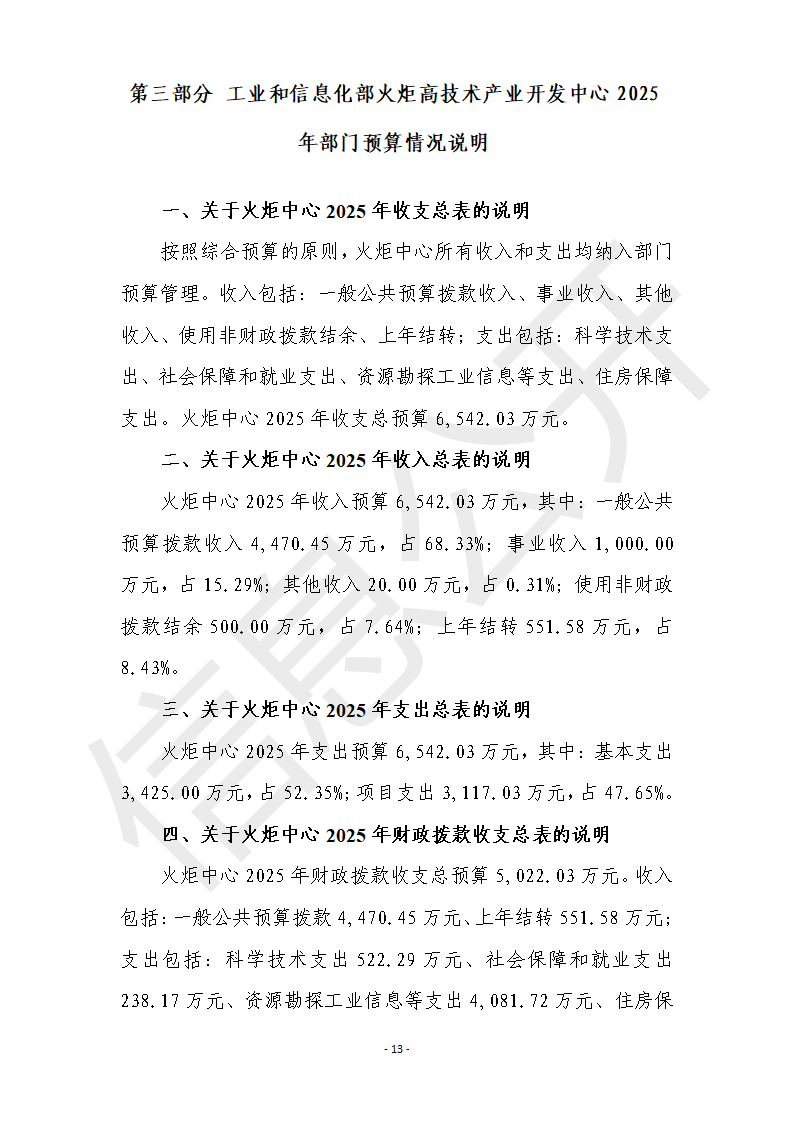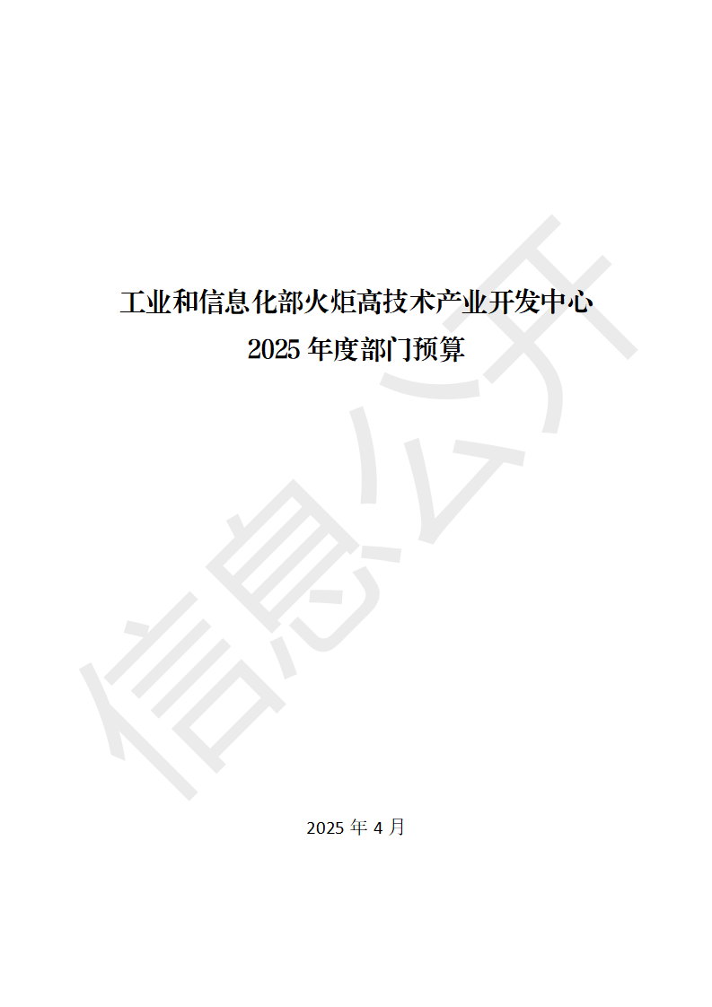 工業(yè)和信息化部火炬高技術(shù)產(chǎn)業(yè)開發(fā)中心2025年度部門預(yù)算