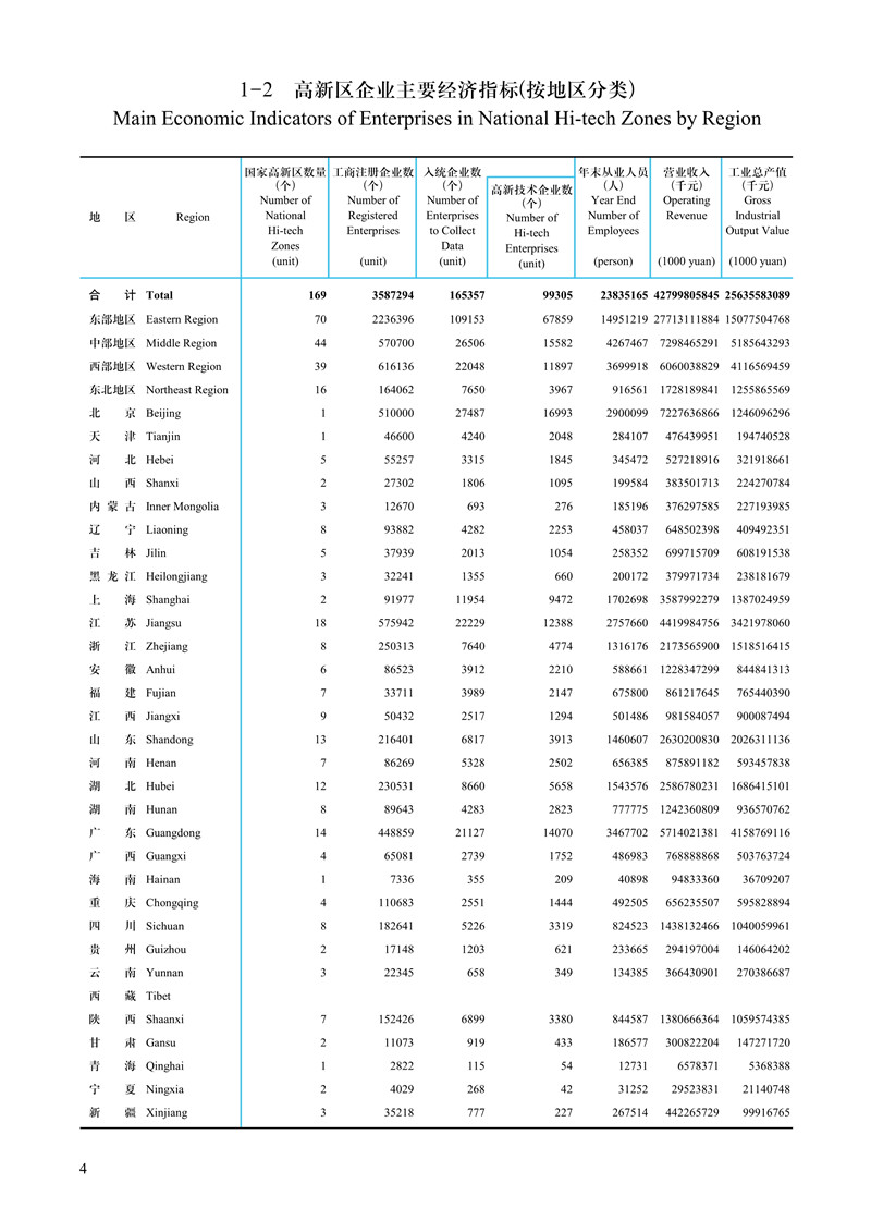 2020年國家高新區(qū)企業(yè)主要經(jīng)濟(jì)指標(biāo)