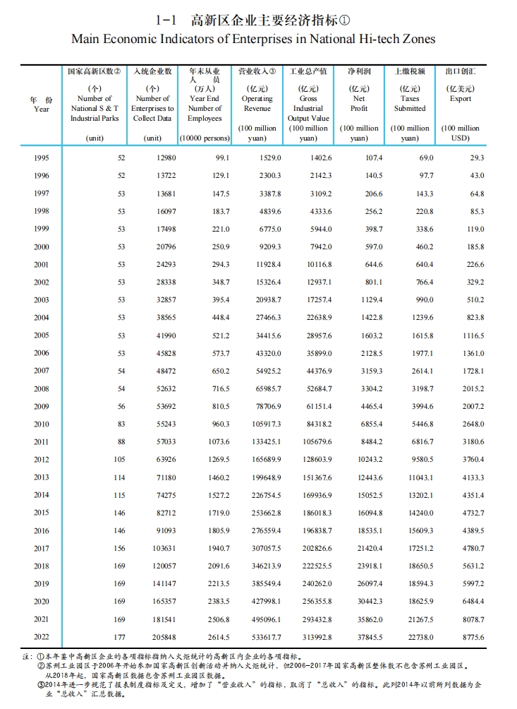 2022年國(guó)家高新區(qū)企業(yè)主要經(jīng)濟(jì)指標(biāo)