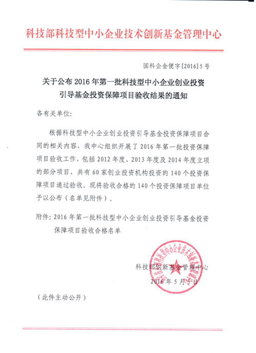 附件:2016年第一批科技型中小企業(yè)創(chuàng)業(yè)投資引導基金投資保障項目驗收合格名單