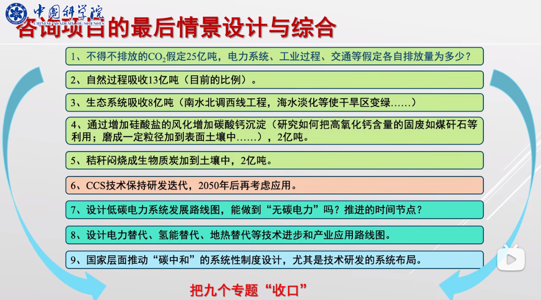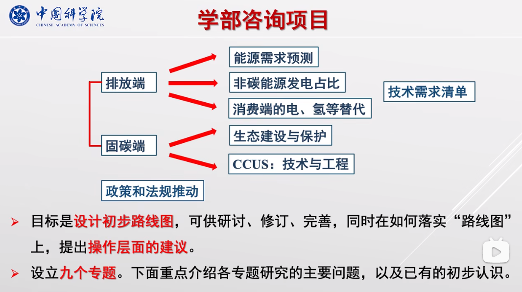 針對碳中和問題中的科技需求,中國科學(xué)院學(xué)部設(shè)立重大咨詢項目“中國碳中和框架路線圖研究”,目標(biāo)是設(shè)計初步路線圖,可供研討、修訂、完善,同時在如何落實“路線圖”上,提出操作層面的建議。