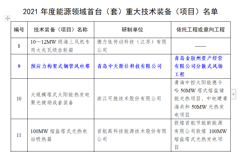 經(jīng)組織專家評(píng)審和復(fù)核、公示,2022年5月7日國(guó)家能源局正式發(fā)布公告,將我公司預(yù)應(yīng)力構(gòu)架式鋼管風(fēng)電塔列為《2021年度能源領(lǐng)域首臺(tái)(套)重大技術(shù)裝備項(xiàng)目》。