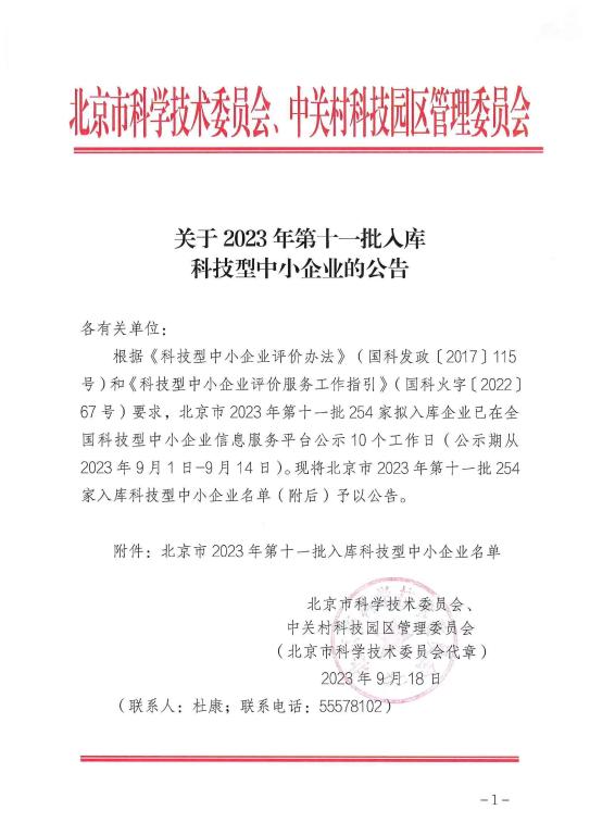北京市2023年第11批入庫(kù)科技型中小企業(yè)名單公告正文.jpg PICTURE