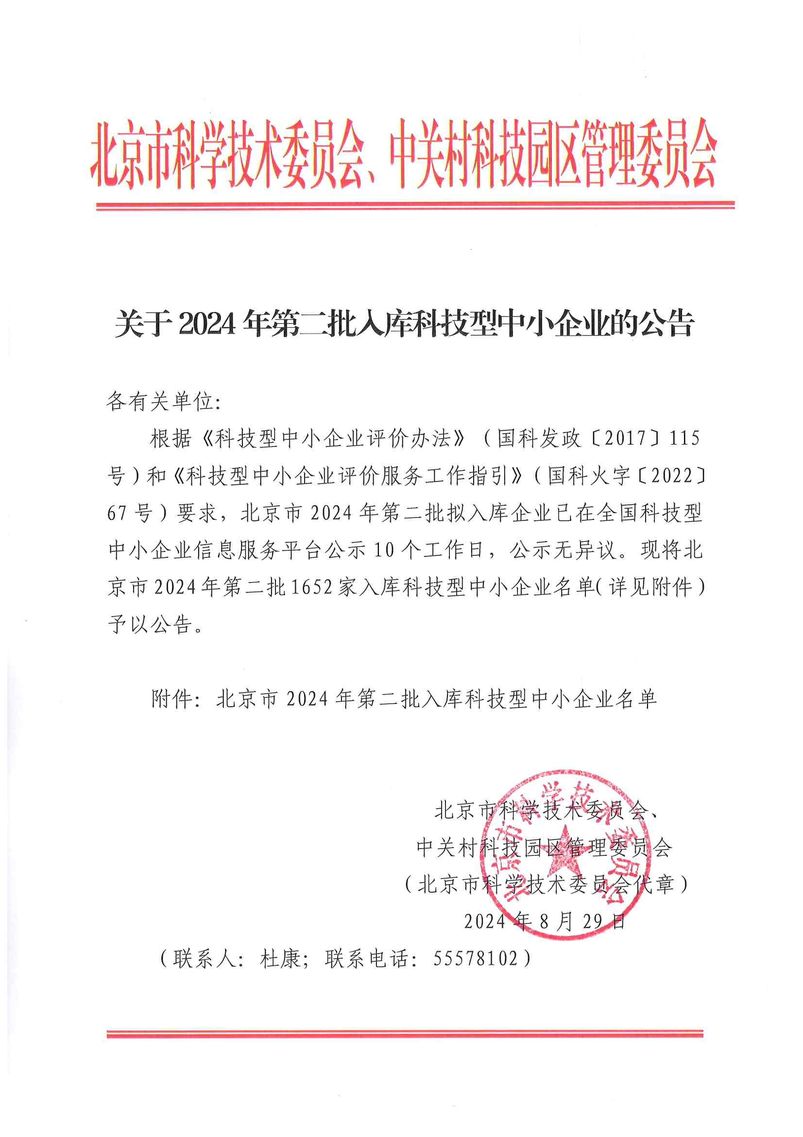 北京市2024年第2批入庫科技型中小企業(yè)名單公告