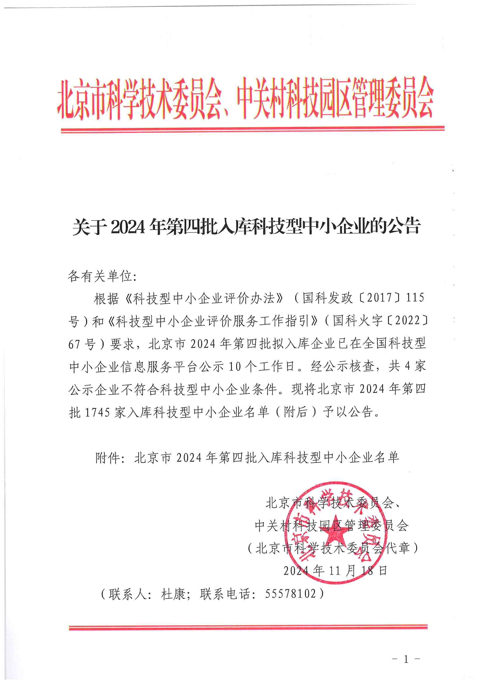 北京市2024年第4批入庫(kù)科技型中小企業(yè)名單公告
