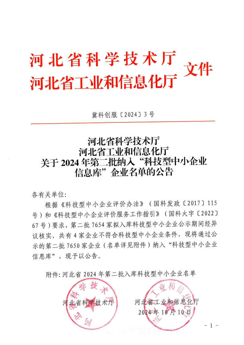 河北省2024年第2批入庫科技型中小企業(yè)名單公告