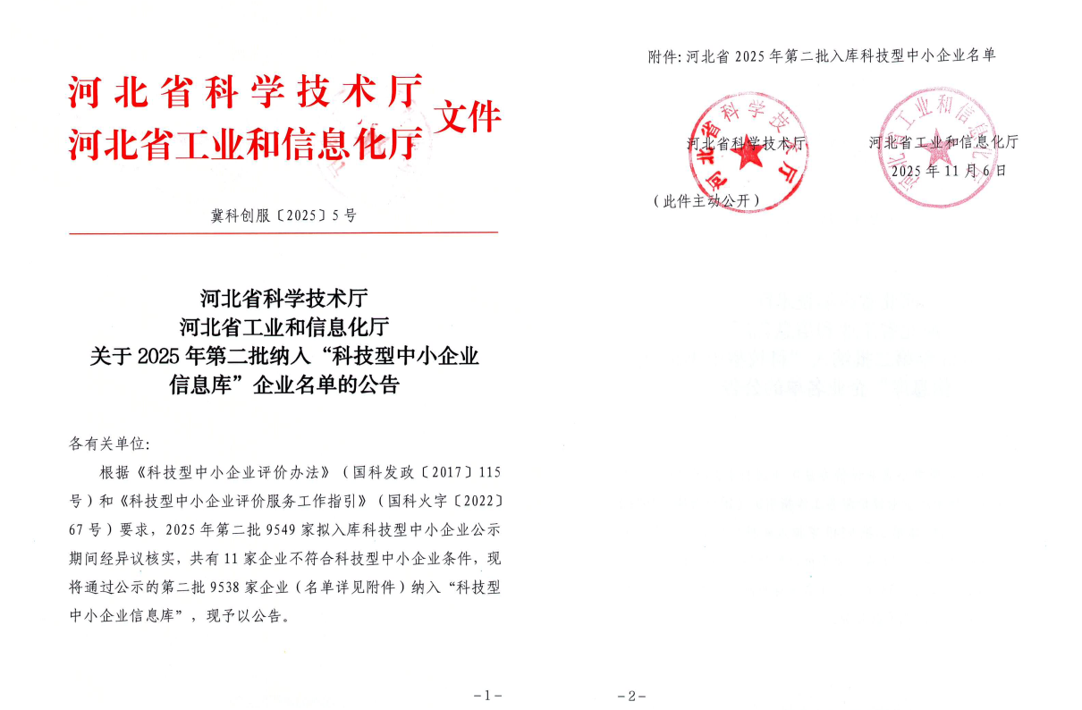 河北省2025年第2批入庫科技型中小企業(yè)名單公告