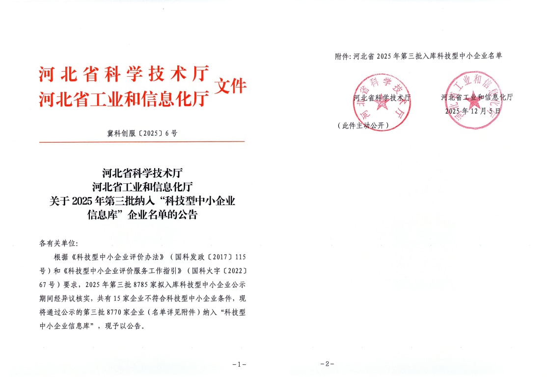河北省2025年第3批入庫科技型中小企業(yè)名單公告