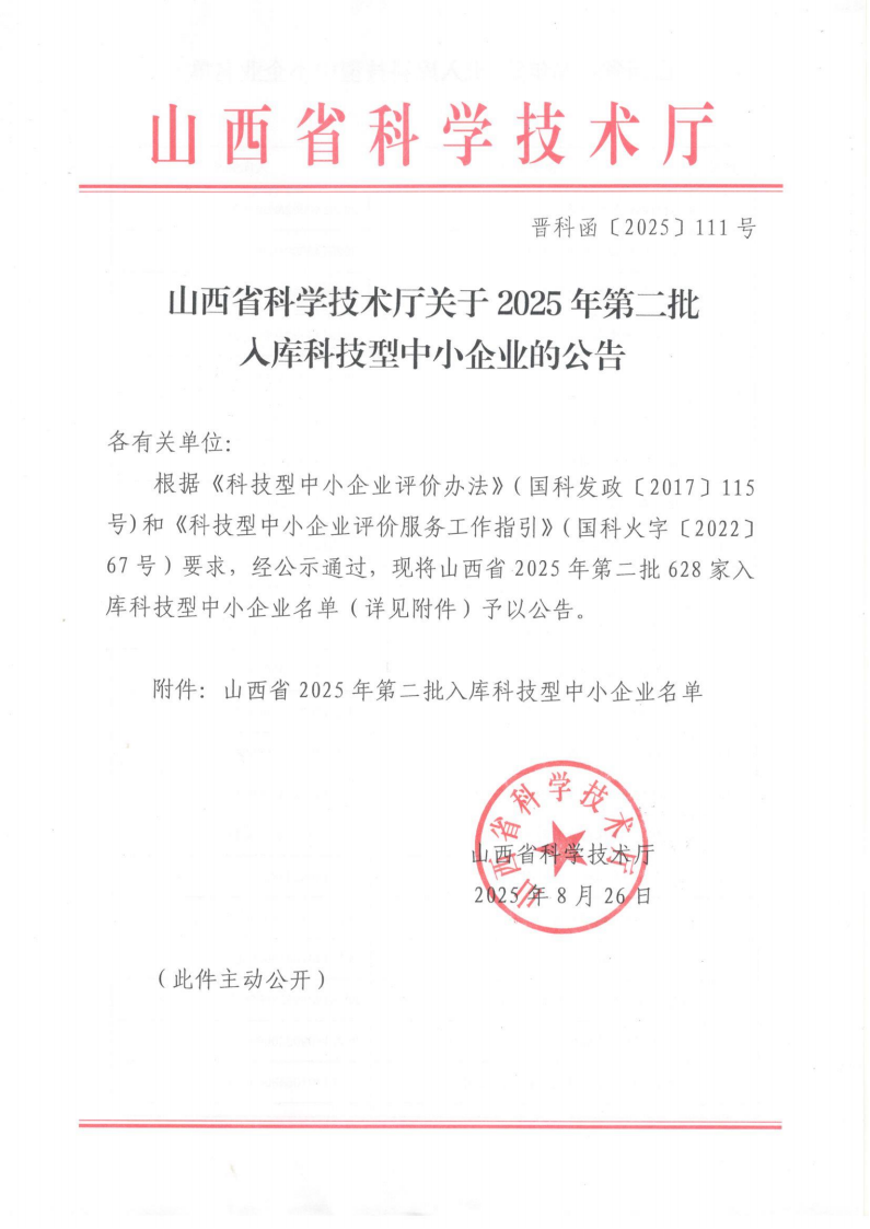 山西省2025年第2批入庫科技型中小企業(yè)名單公告