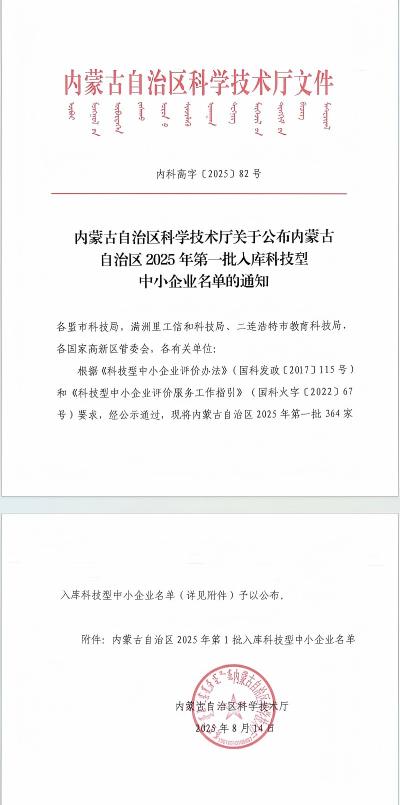 內(nèi)蒙古自治區(qū)2025年第1批入庫科技型中小企業(yè)名單公告
