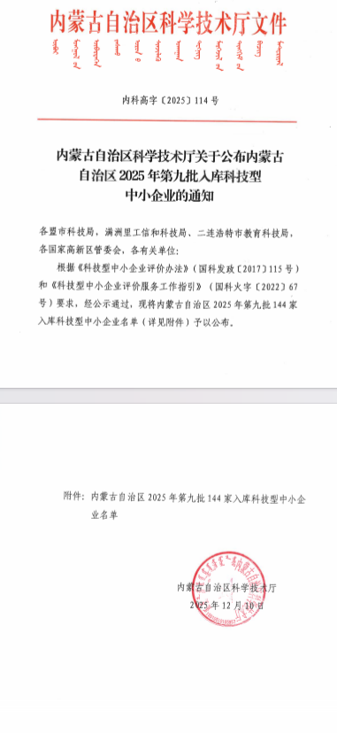 內(nèi)蒙古自治區(qū)2025年第9批入庫(kù)科技型中小企業(yè)名單公告正文.jpg PICTURE