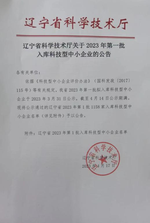 遼寧省2023年第1批入庫科技型中小企業(yè)名單公告