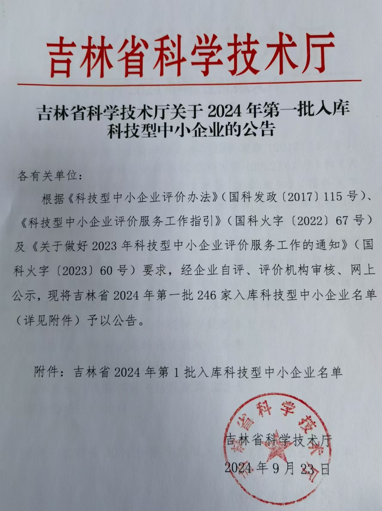 吉林省2024年第1批入庫(kù)科技型中小企業(yè)名單公告正文.jpg PICTURE