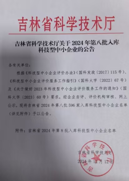 吉林省2024年第8批入庫(kù)科技型中小企業(yè)名單公告正文.jpg PICTURE