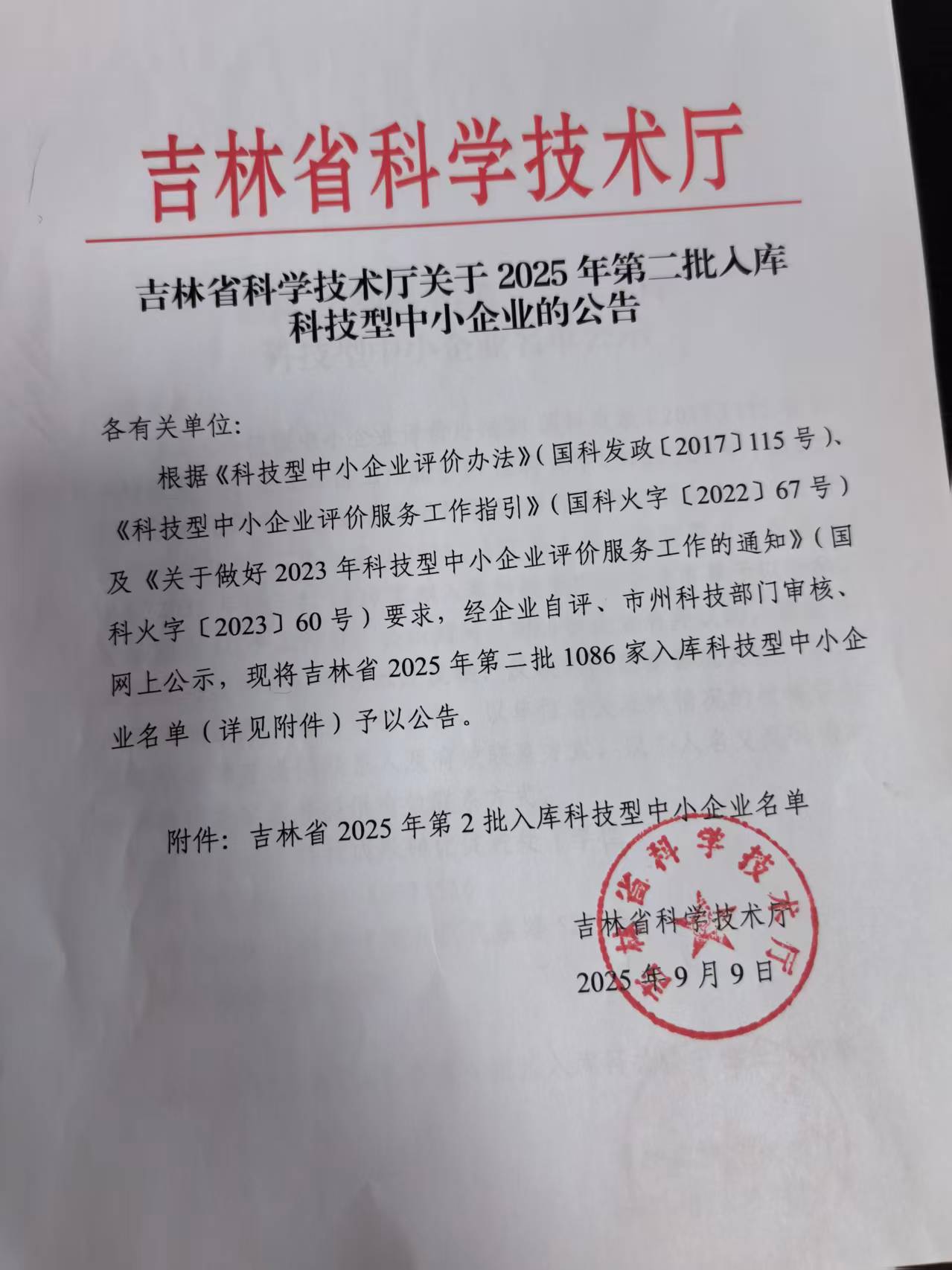 吉林省2025年第2批入庫科技型中小企業(yè)名單公告