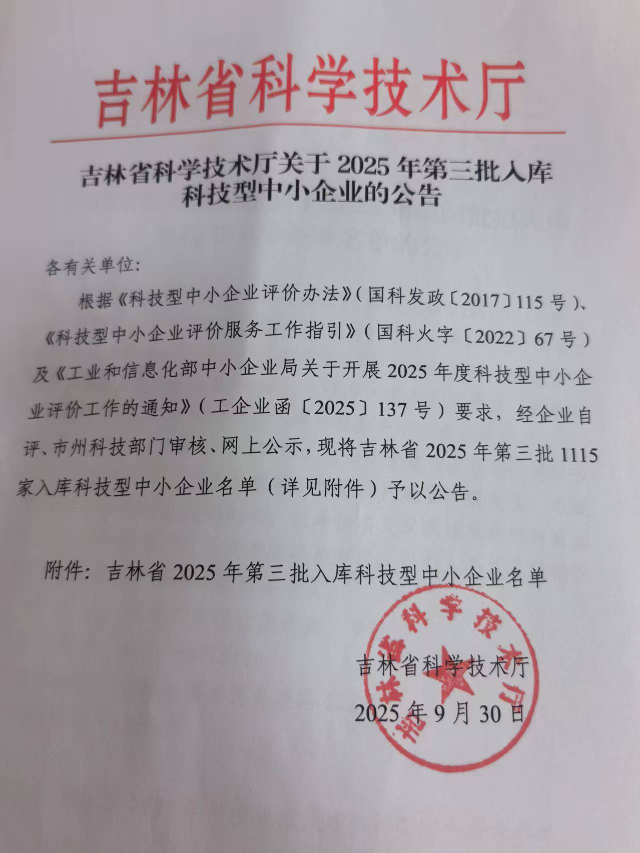 吉林省2025年第3批入庫(kù)科技型中小企業(yè)名單公告正文.jpg PICTURE
