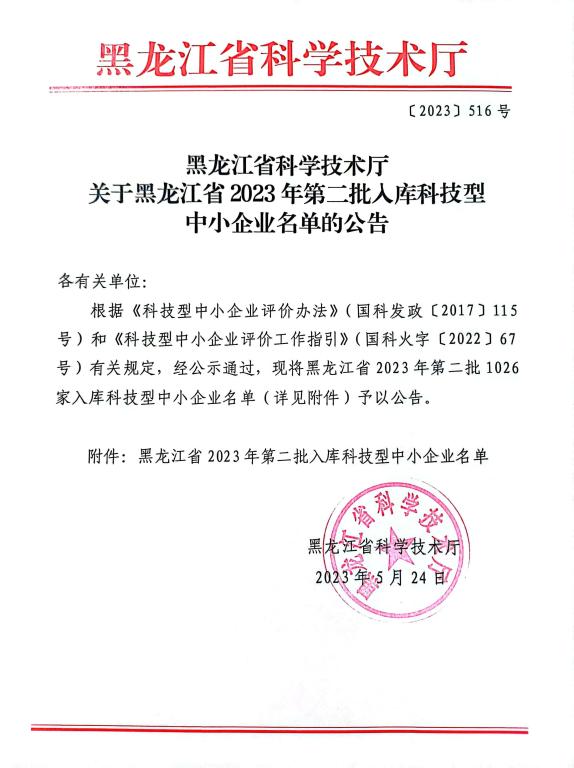 黑龍江省2023年第2批入庫科技型中小企業(yè)名單公告