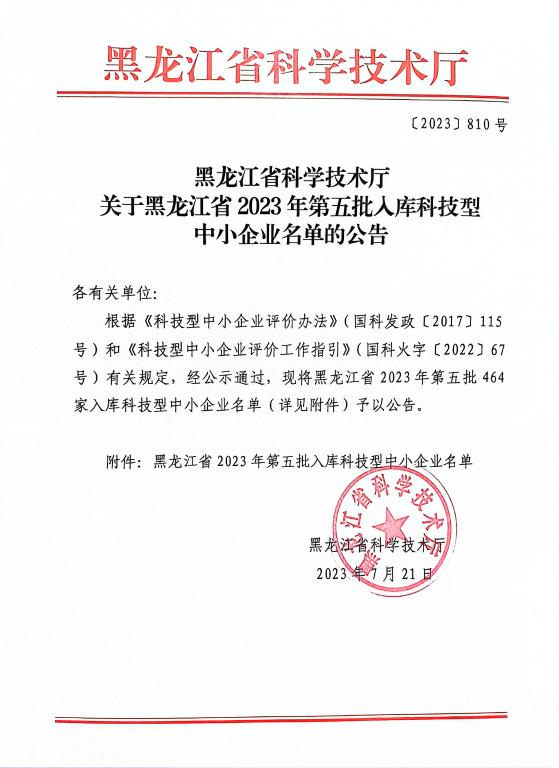 黑龍江省2023年第5批入庫科技型中小企業(yè)名單公告