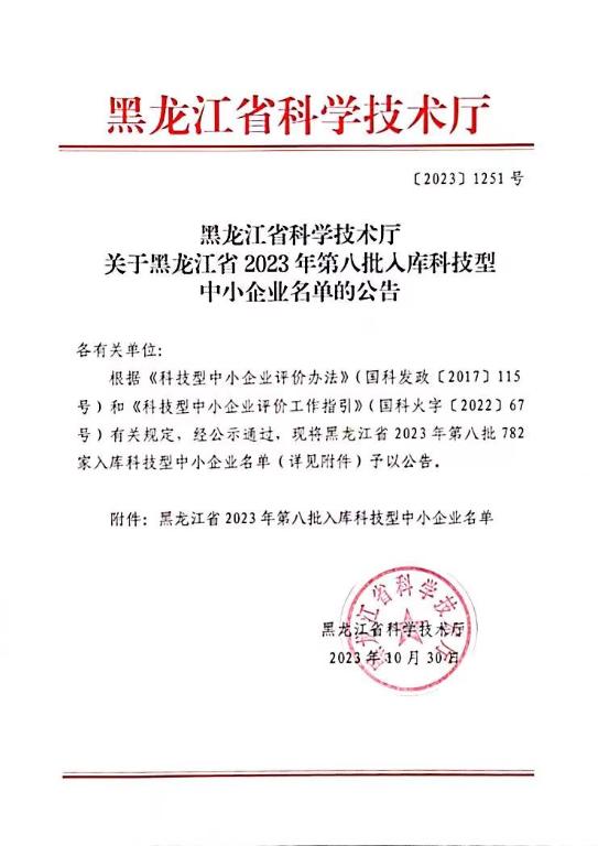 黑龍江省2023年第8批入庫科技型中小企業(yè)名單公告