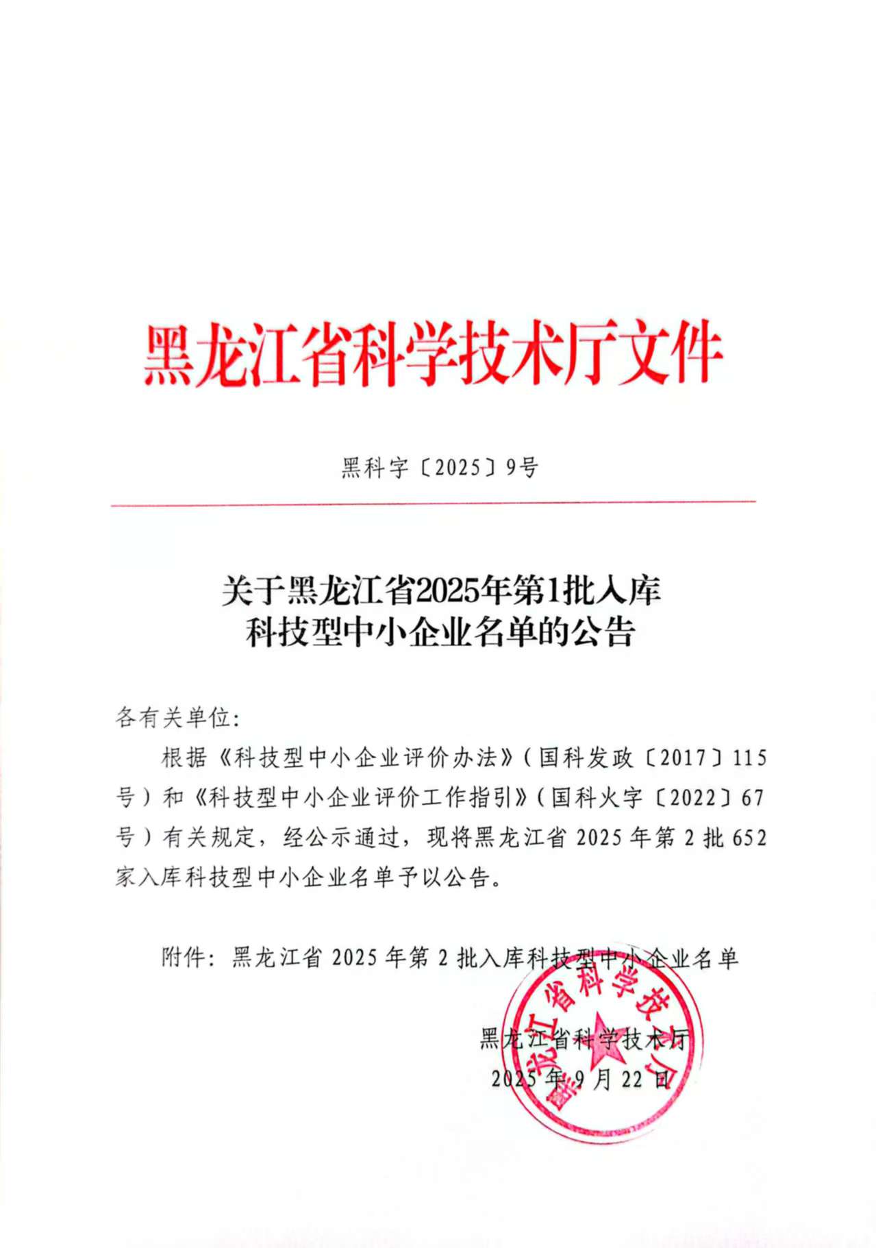 黑龍江省2025年第2批入庫(kù)科技型中小企業(yè)名單公告正文.jpg PICTURE