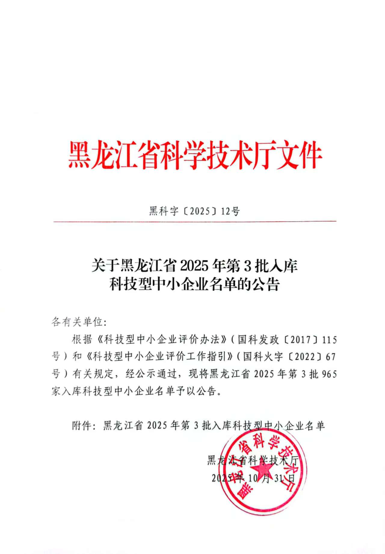 黑龍江省2025年第3批入庫(kù)科技型中小企業(yè)名單公告正文.jpg PICTURE