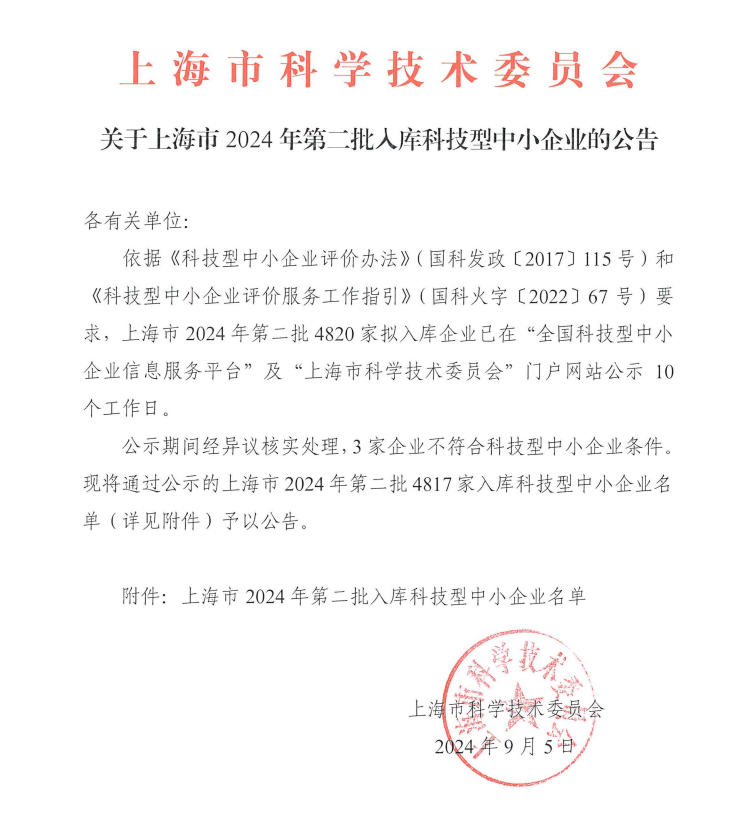 上海市2024年第2批入庫(kù)科技型中小企業(yè)名單公告正文.jpg PICTURE