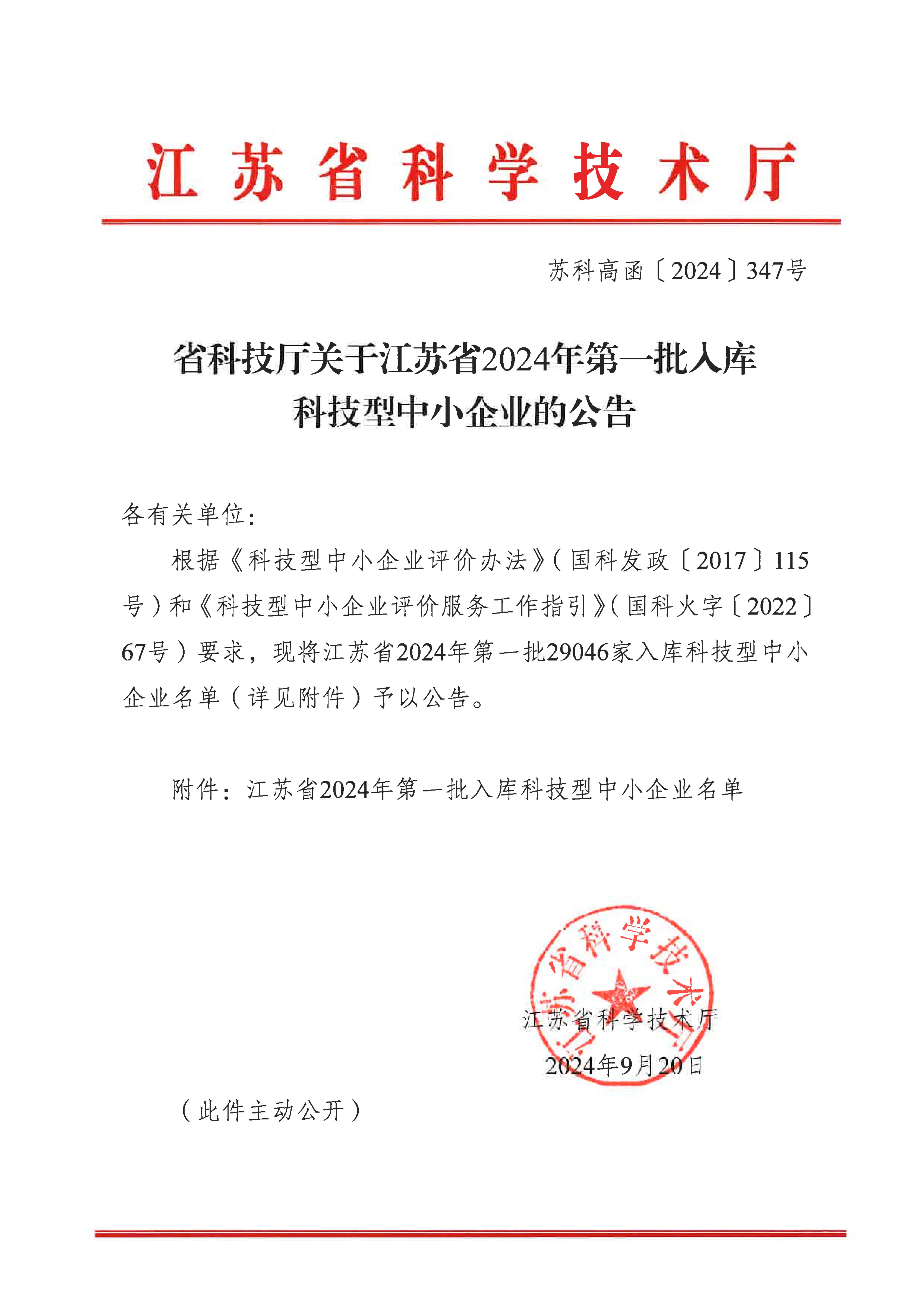 江蘇省2024年第1批入庫(kù)科技型中小企業(yè)名單公告正文.jpg PICTURE