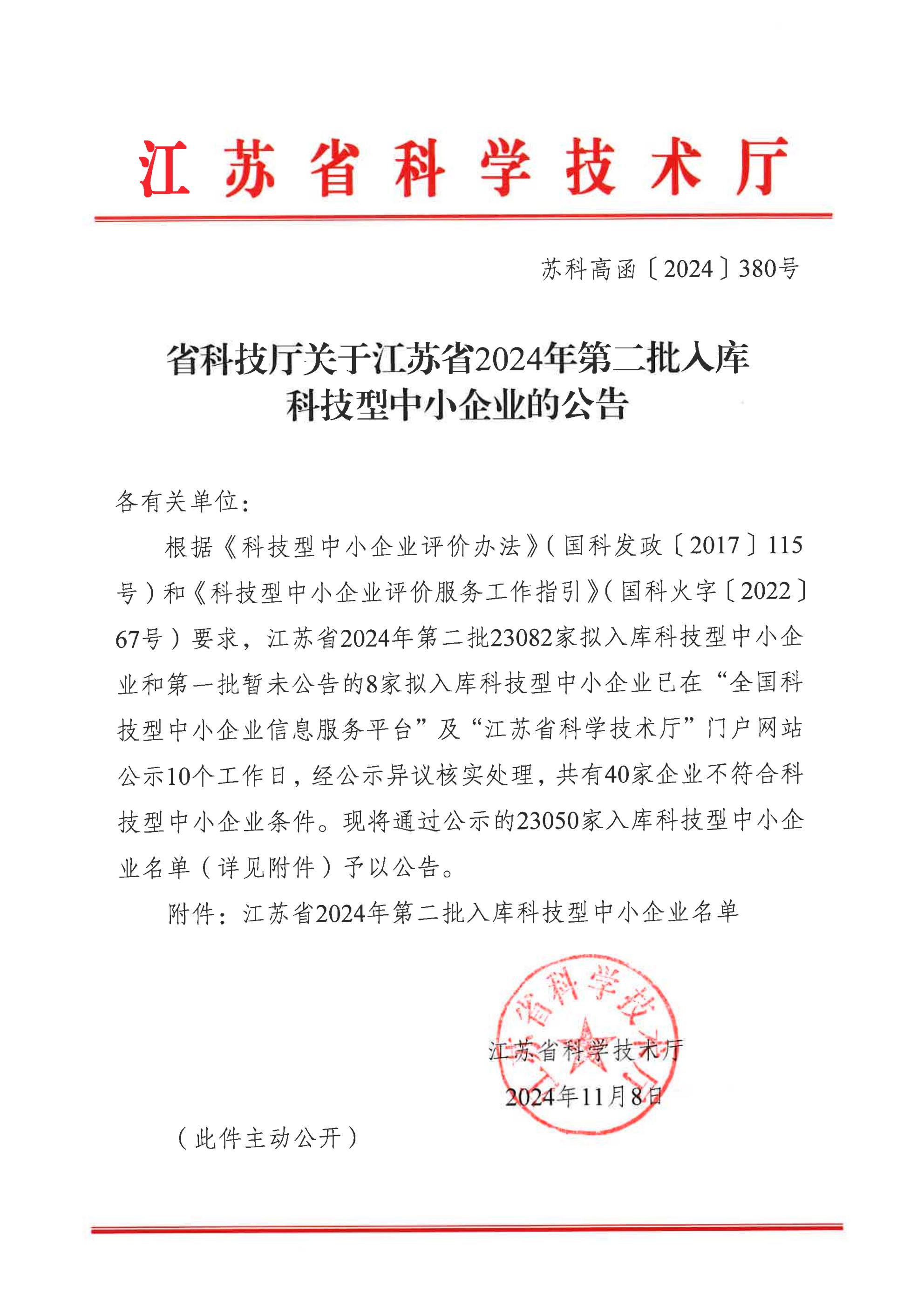 江蘇省2024年第2批入庫科技型中小企業(yè)名單公告
