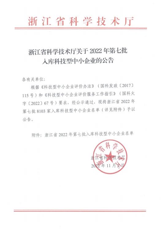 浙江省2022年第7批入庫(kù)科技型中小企業(yè)名單公告正文.jpg PICTURE