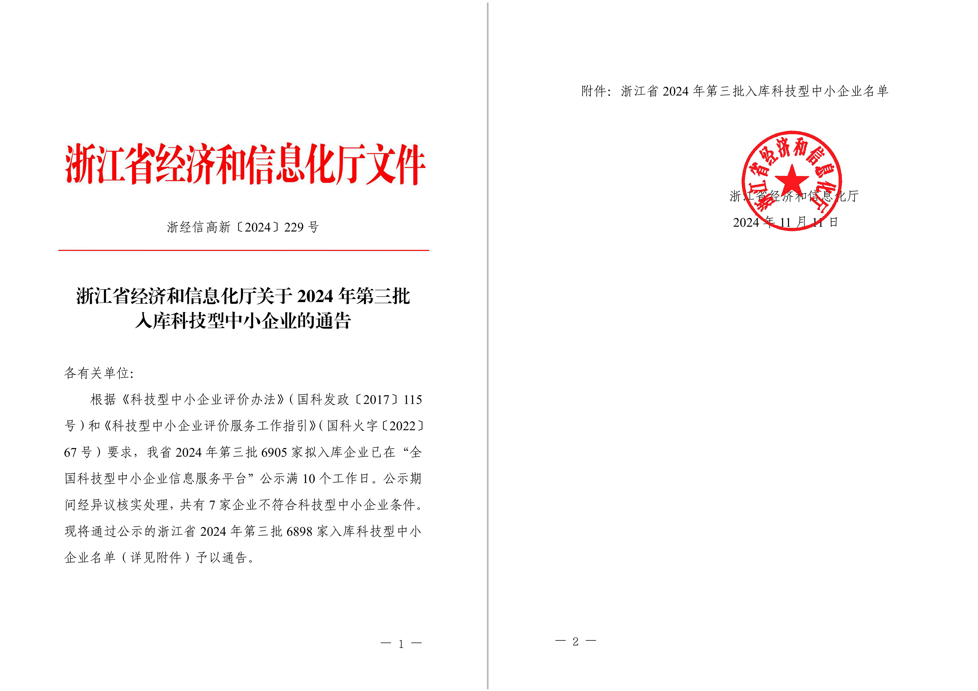 浙江省2024年第3批入庫科技型中小企業(yè)名單公告
