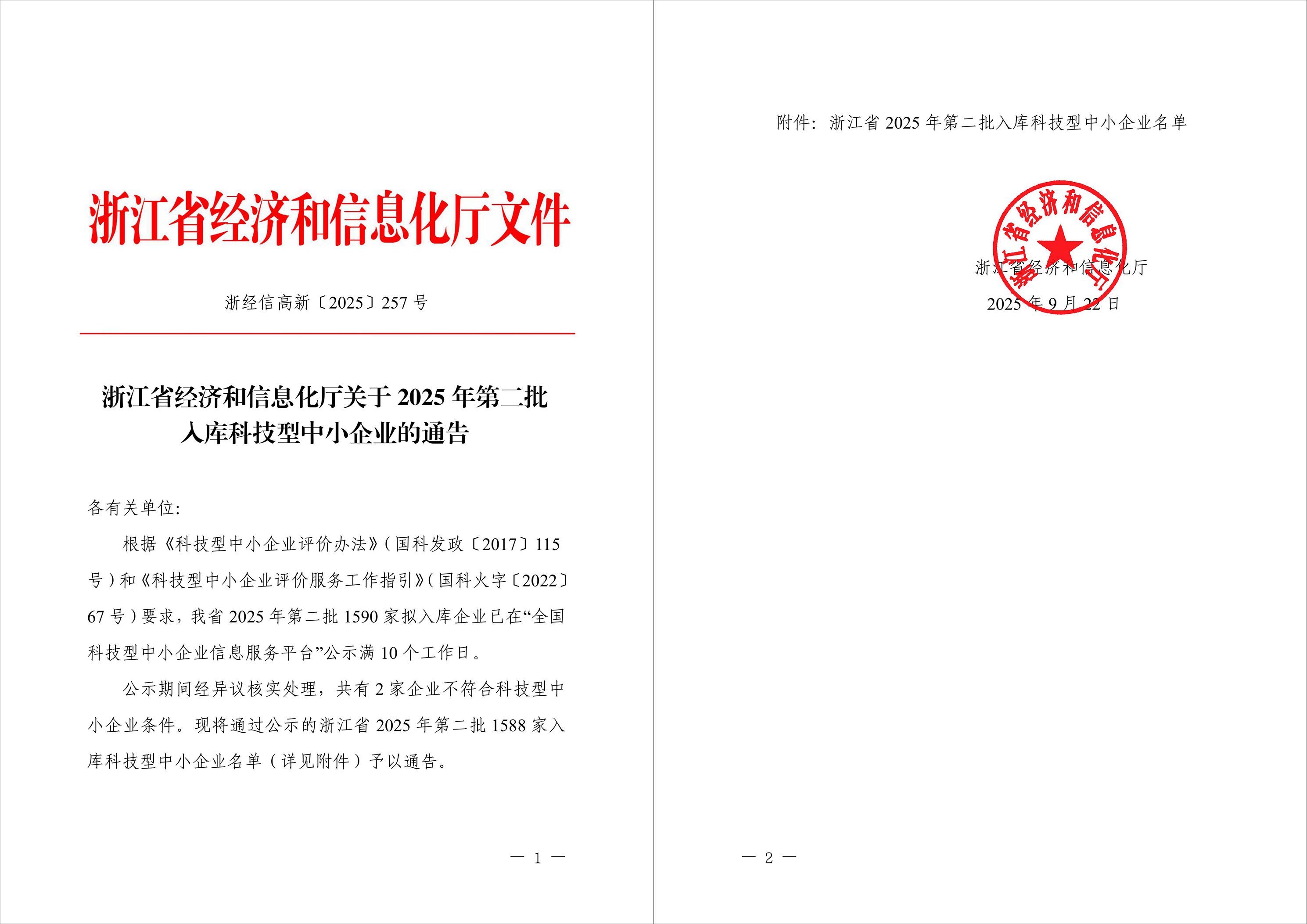 浙江省2025年第2批入庫科技型中小企業(yè)名單公告