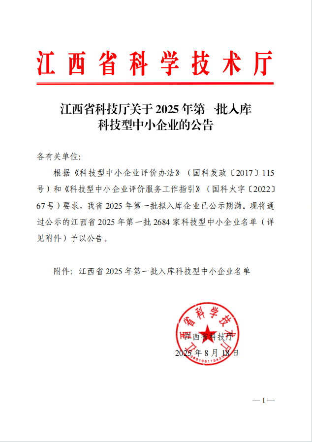 江西省2025年第1批入庫(kù)科技型中小企業(yè)名單公告正文.jpg PICTURE