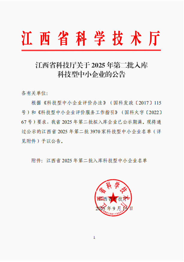 江西省2025年第2批入庫科技型中小企業(yè)名單公告